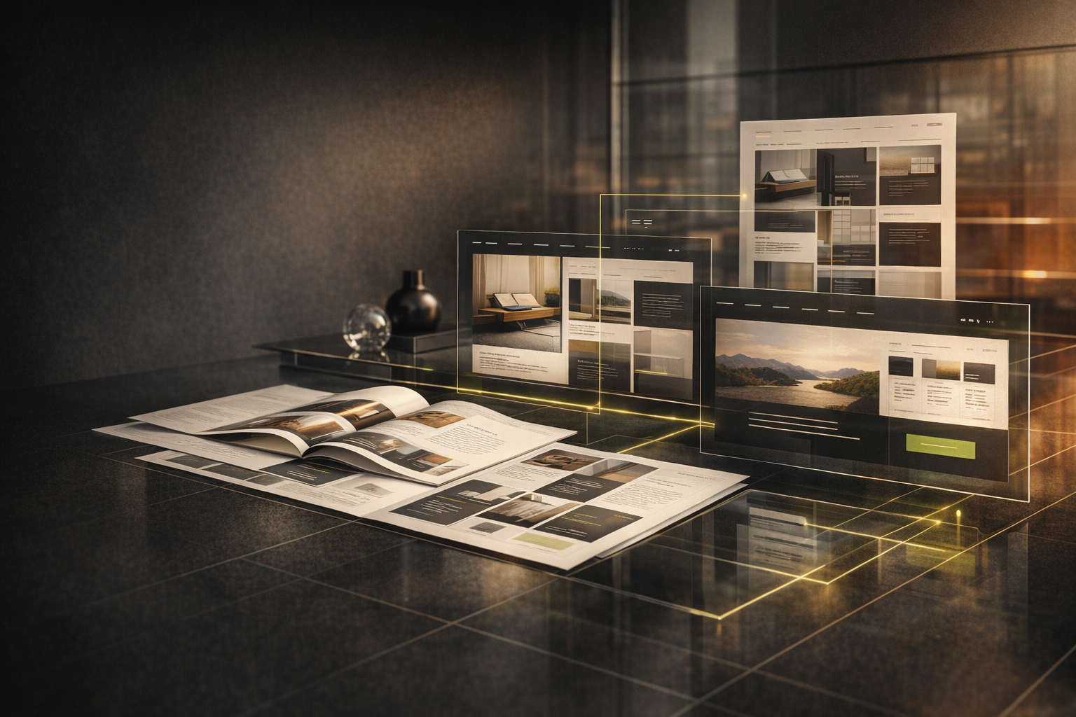 Clean hierarchy. Strong contrast. Editorial imagery. Sharp motion. Direct calls to action. Nothing ornamental unless it earns its place.